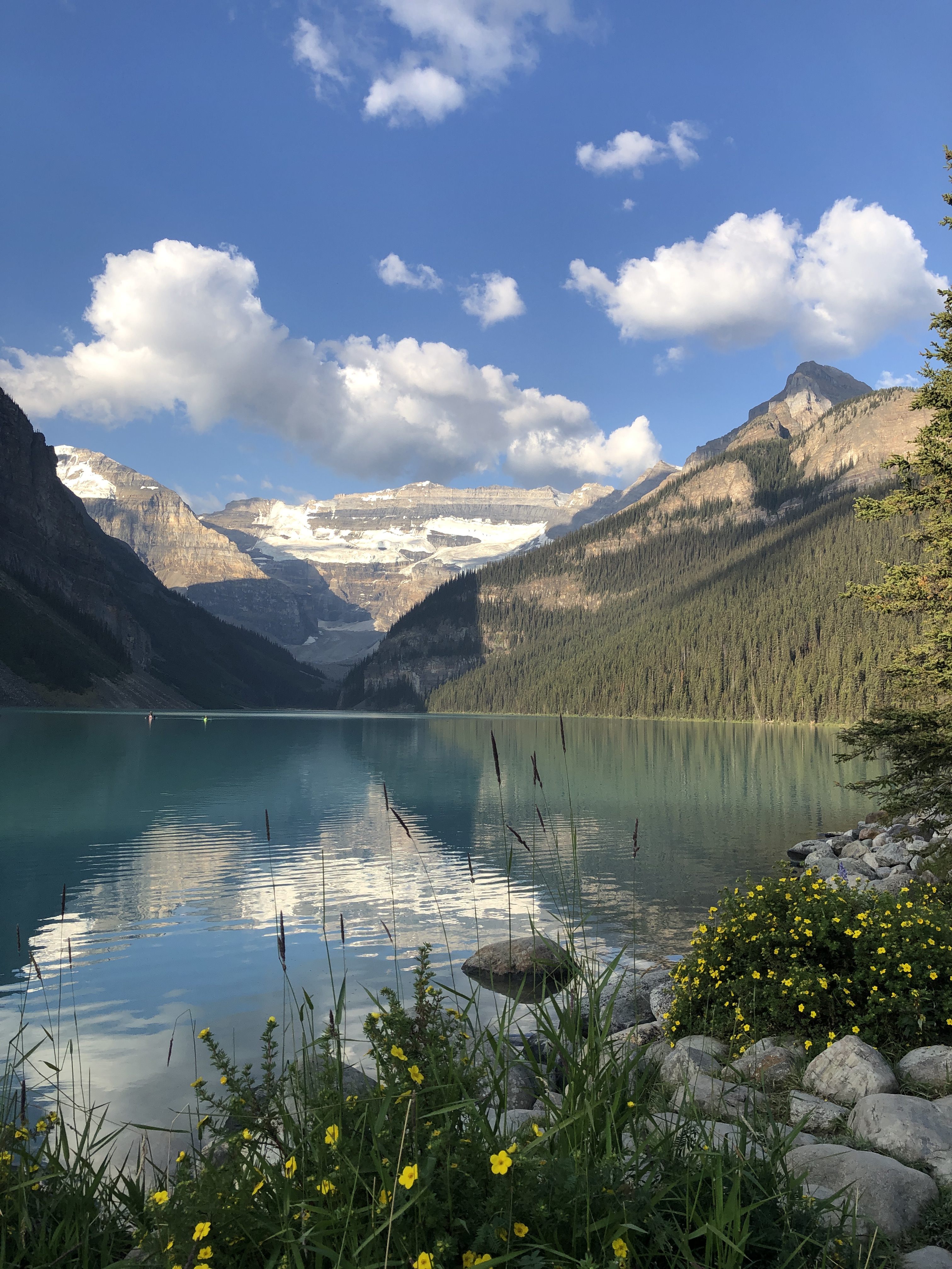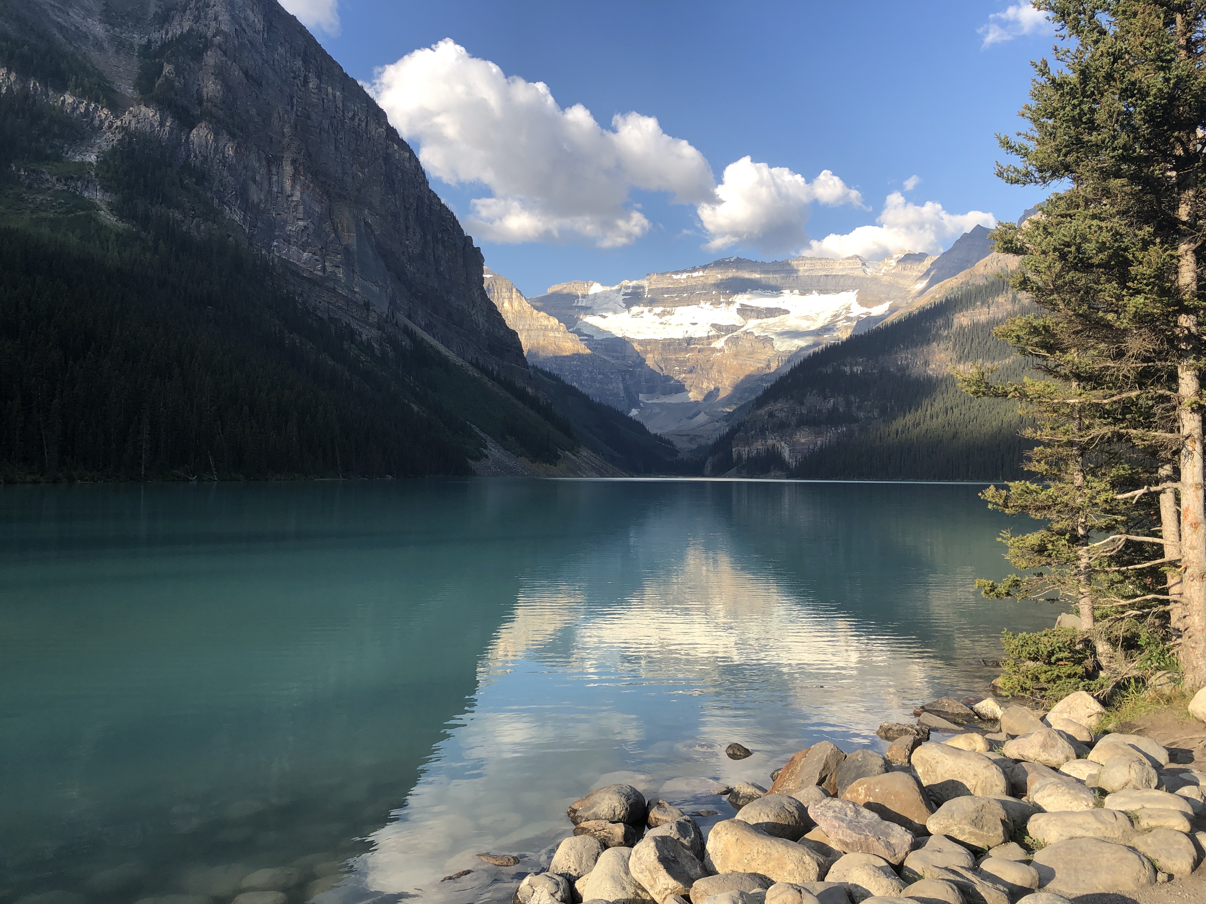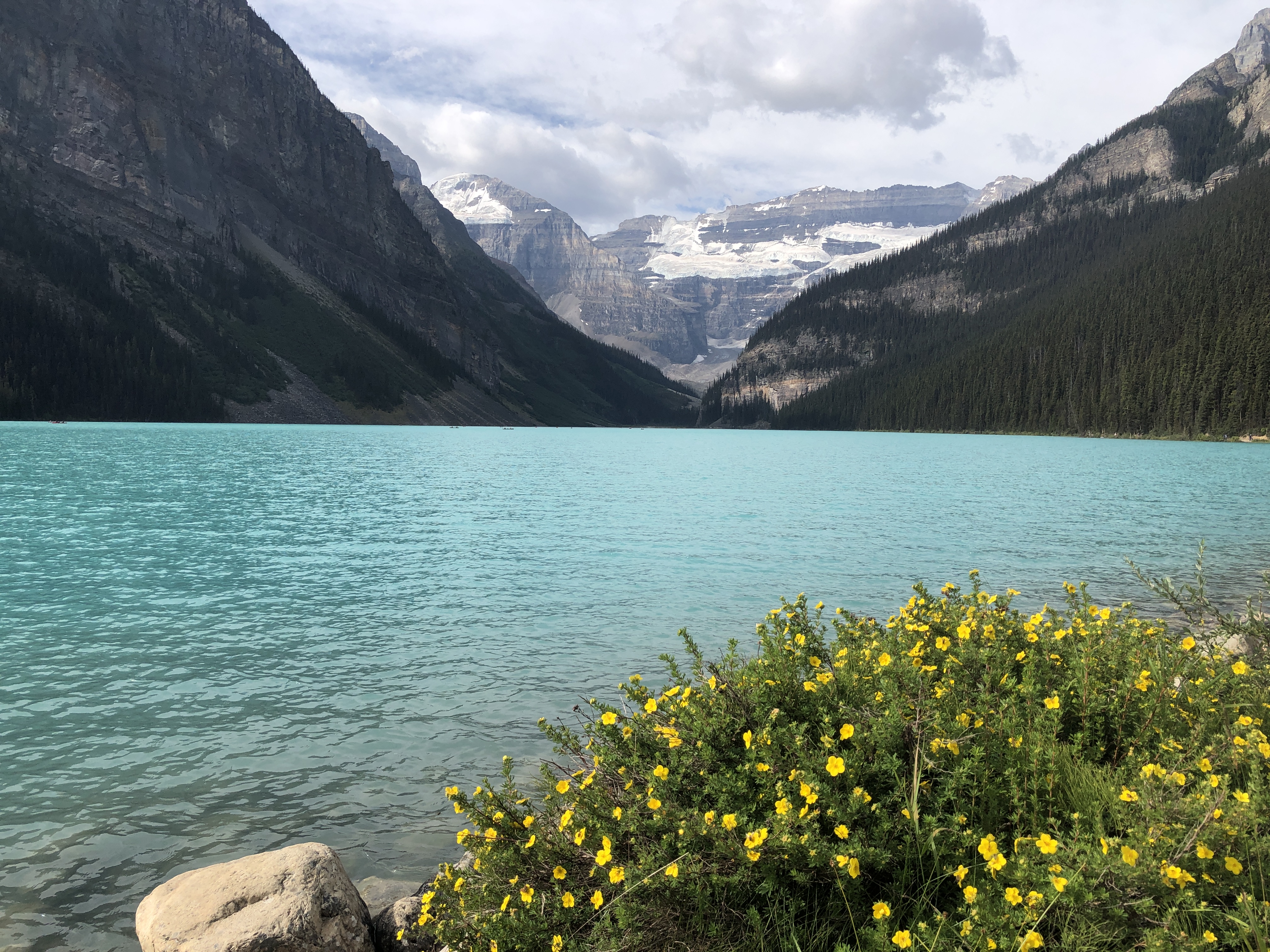 The Lake Louise shoreline trail was a lot more accessible, and stretched its way around the lake, leading to the Plain of the Six Glaciers trail and another teahouse (these people really like their teahouses, clearly). It allowed some really gorgeous views of the other side of the lake, towards the Fairmont Chateau Lake Louise, and was a relatively steady walk itself, despite being quite a busy trail.