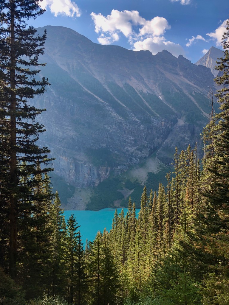 There are numerous hiking trails and activities around Lake Louise itself, and I decided to do both the Lake Agnes trail and the Lake Louise shoreline trail in the morning. The Lake Agnes trail was tricky – I’m relatively fit and walk a fair amount, and the trail itself was up a steep incline with uneven ground in parts. At the top of the trail is a tea house which, I’ll be honest, I didn’t get to because of time and lack of physical health (lol), but the peek-a-boo views on the way up were truly stunning: